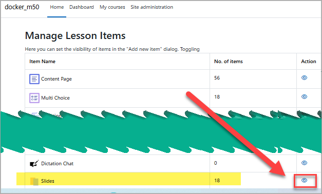 Site administration -> Plugins -> Activity Modules -> Poodll MiniLesson -> Manage Lesson Items