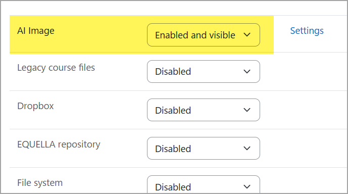 There set "AI Image" to "Enabled and Visible." This will take you to the settings page.