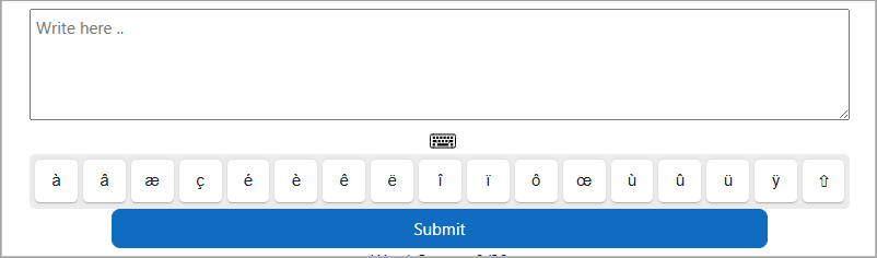 In MiniLesson item types FreeWriting, Typing Gapfill and Listening GapFill there is an option to enable a virtual keyboard. The virtual keyboard is designed for use when the learner's physical keyboard does not have the characters that they need to type, and they do not have the necessary IME (input method) or do not know how to use the IME for that language.