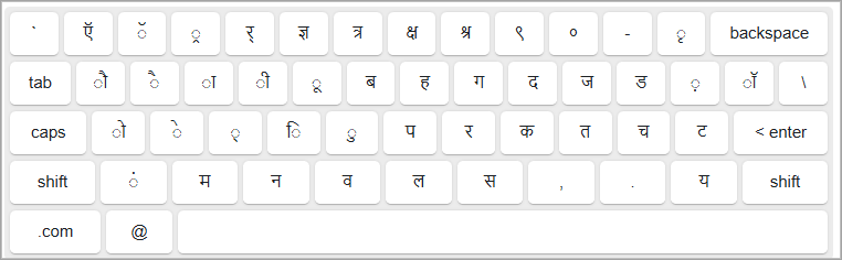 This is an example of the full virtual keyboard in Hindi.
